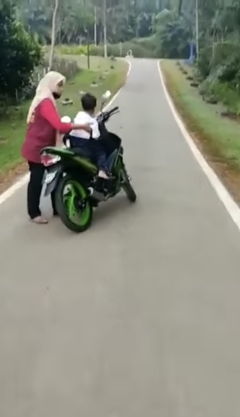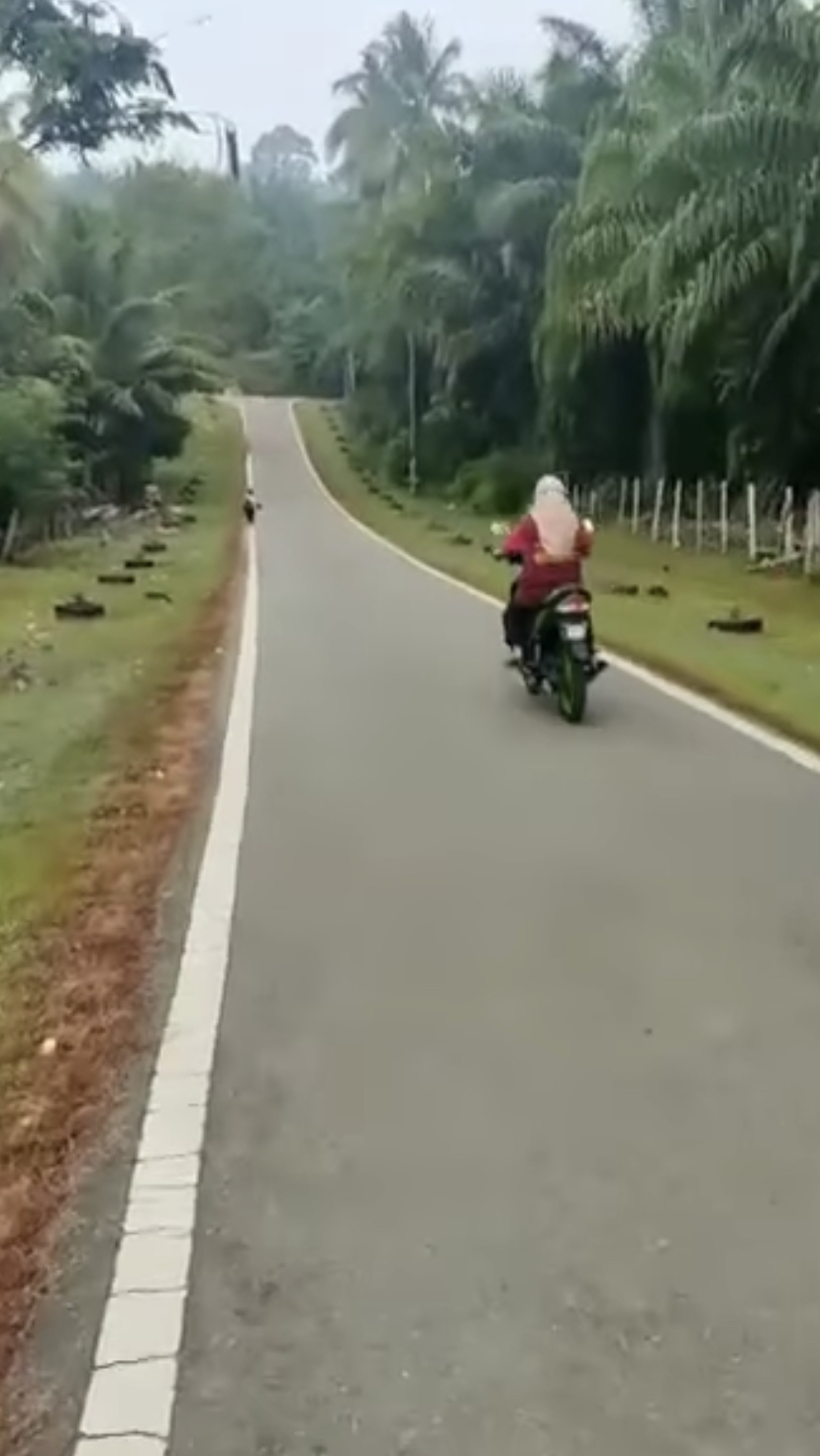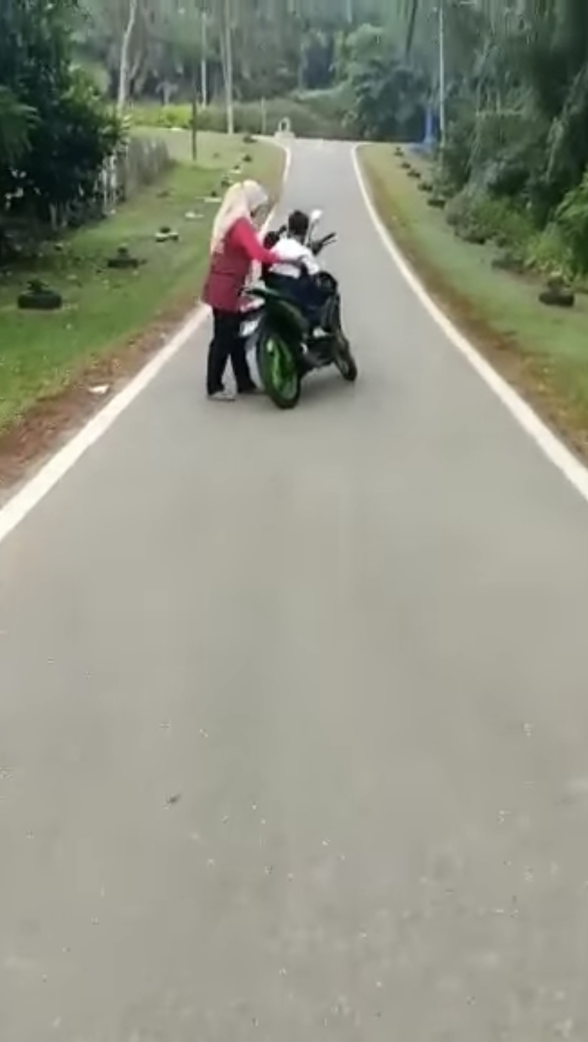 ▼ 就在Pak cik追得快精疲力尽的时候,一名妇女骑着摩哆追上来了!