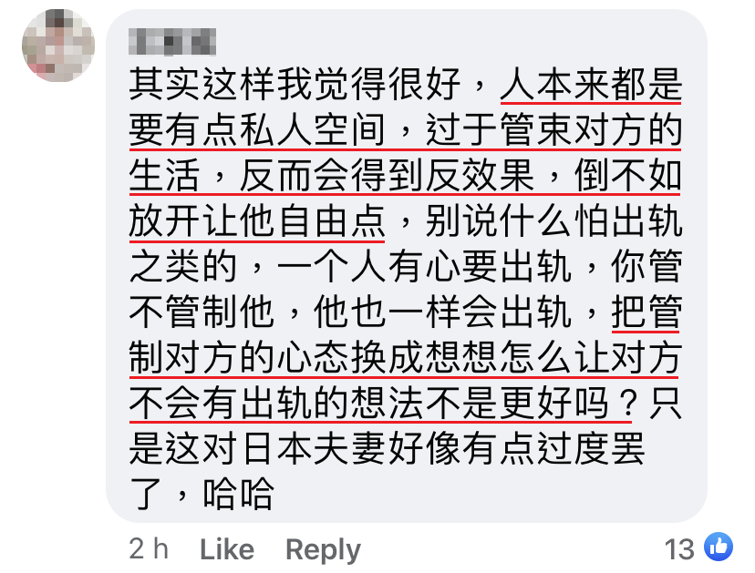 爱子坦言,尽管一开始不大习惯,但后来渐渐发觉被丈夫尊重喜好其实是一件幸福的事,也很喜欢丈夫给她足够的自由。