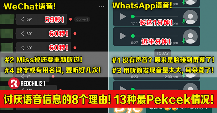 自从有了智慧型手机以后,大家都渐渐从最原始的发送信息(SMS)改为使用通讯App,而在马来西亚最为普遍的就是 WhatsApp 和微信(WeChat),但科技的方便有时候也会带来困扰,就比如频繁地收到语音信息!