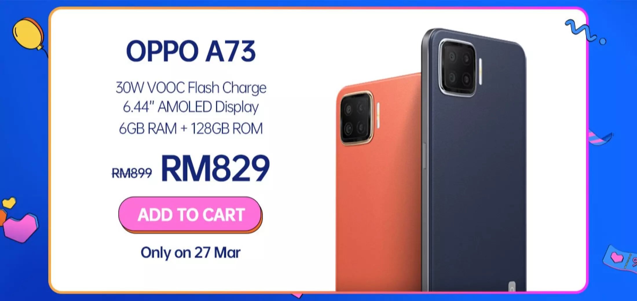 ▪ OPPO A73 Smartphone(6GB RAM+ 128GB RAM)- RM899 RM829【点击这里】