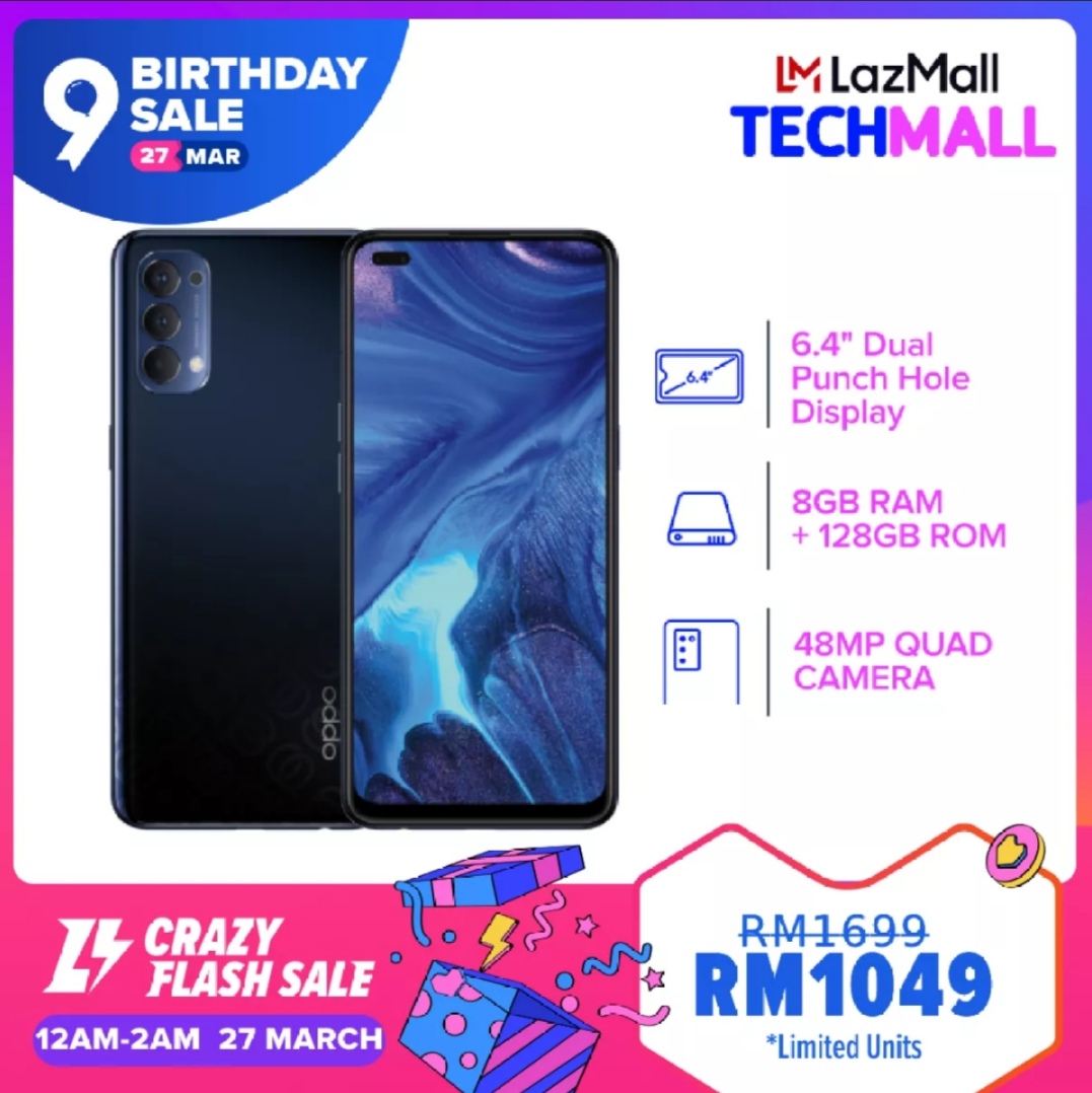 ▪ OPPO RENO 4 (8GB RAM + 128GB ROM) Smartphone – RM1699 RM1049【点击这里】