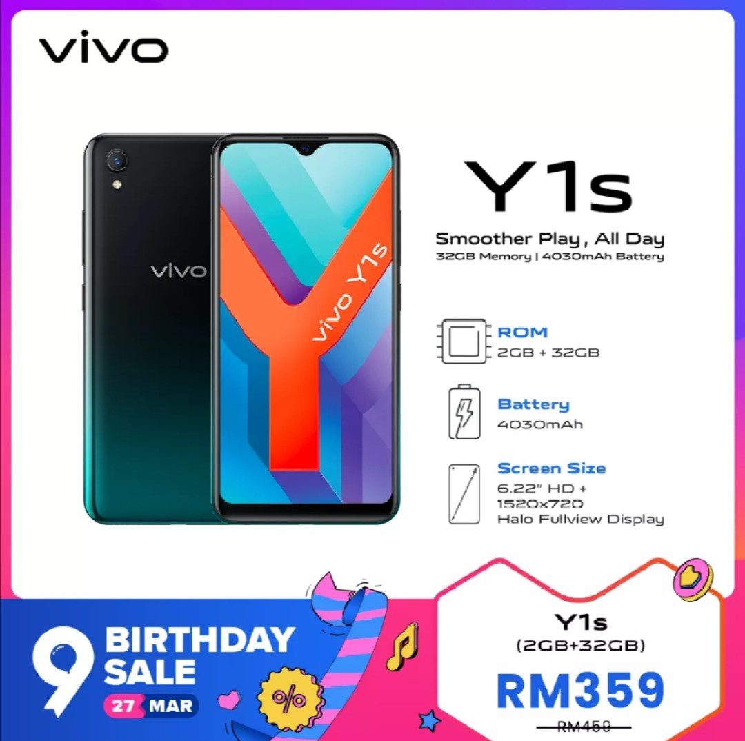 ▪ vivo Y1s (2GB RAM + 32GB ROM) Smartphone – RM459 RM359【点击这里】