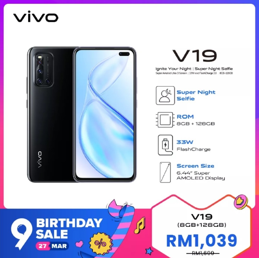 ▪ vivo V19 Smartphone (8GB RAM+ 128GB) – RM1699 RM1039【点击这里】