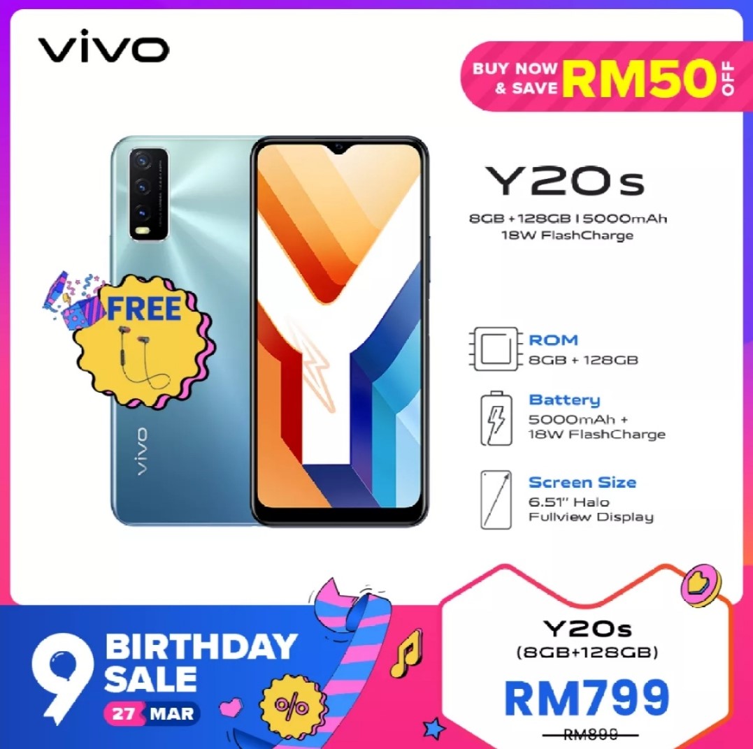 ▪ vivo Y20s smartphone(8GB RAM + 128GB ROM)- RM899 RM799【点击这里】