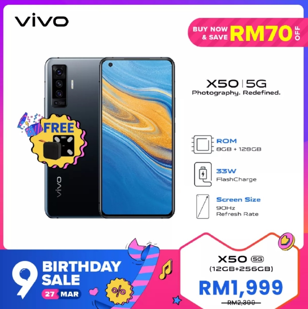 ▪ vivo X50(8GB RAM + 128GB ROM)- RM2399 RM1999【点击这里】