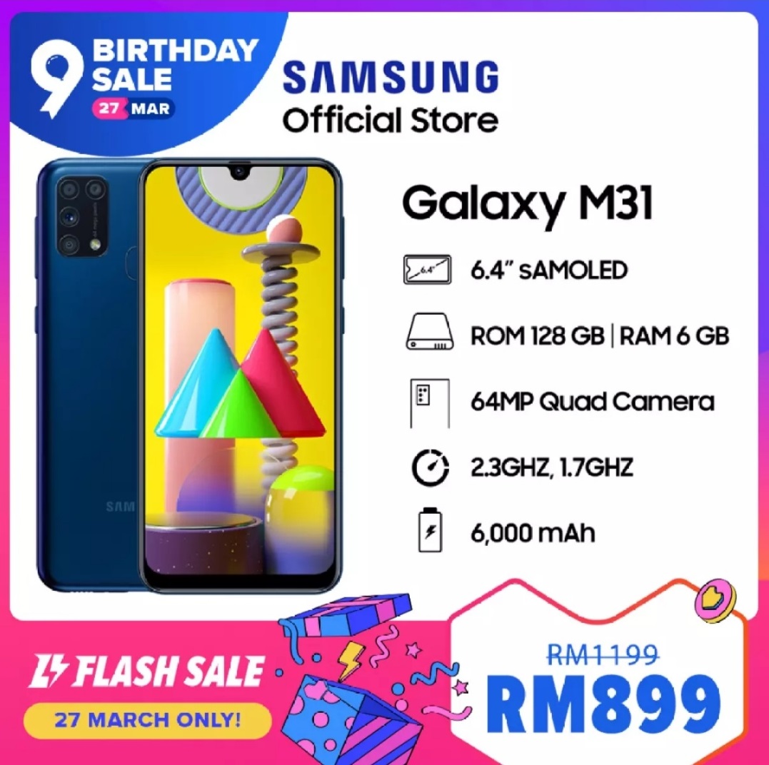 ▪ Samsung Galaxy M31 Smartphone (6GB RAM + 128GB ROM) – RM1199 RM899【点击这里】