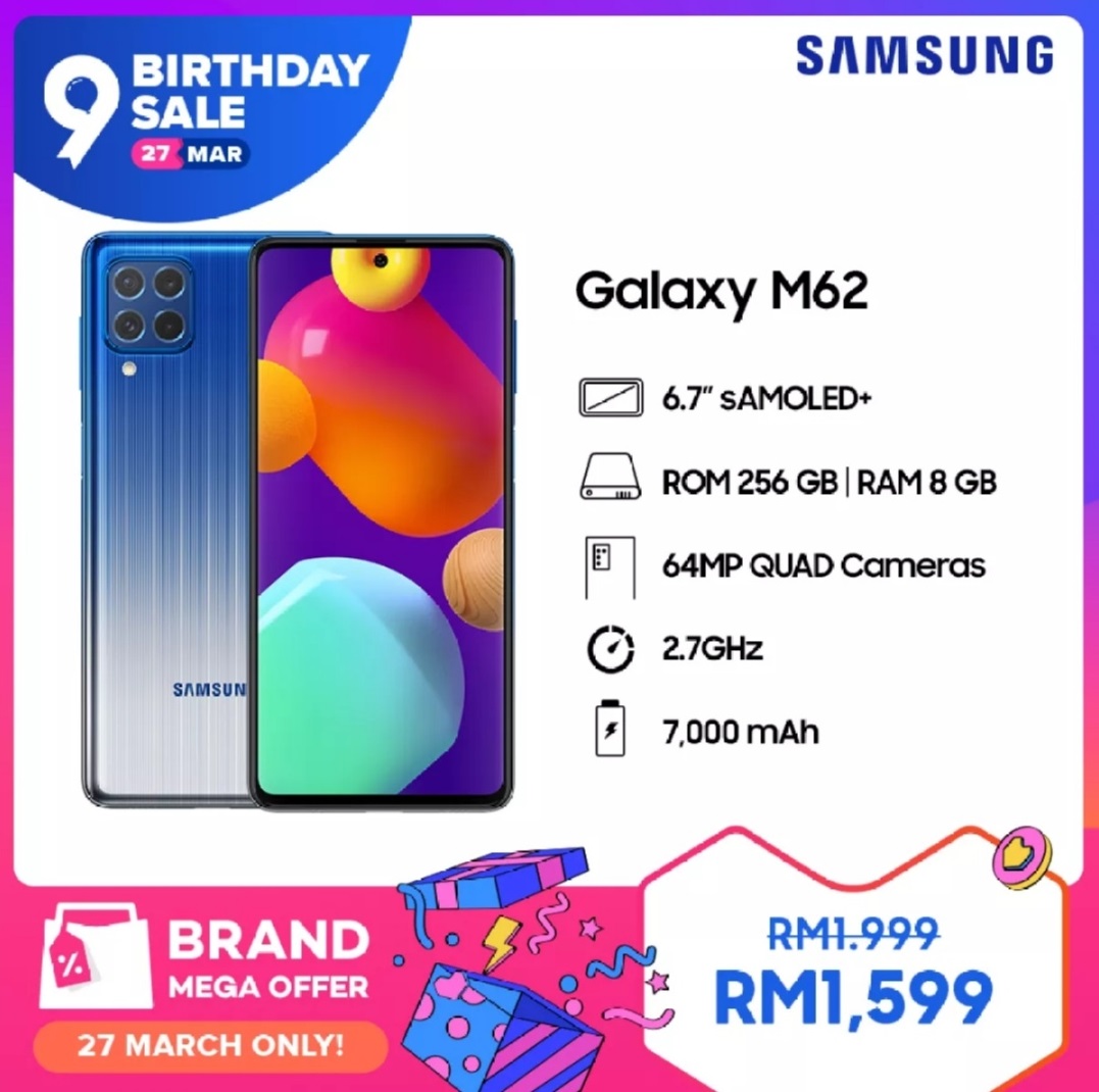 ▪ Samsung Galaxy M62 Original Smartphone (8GB RAM + 256GB ROM) – RM1999 RM1599【点击这里】