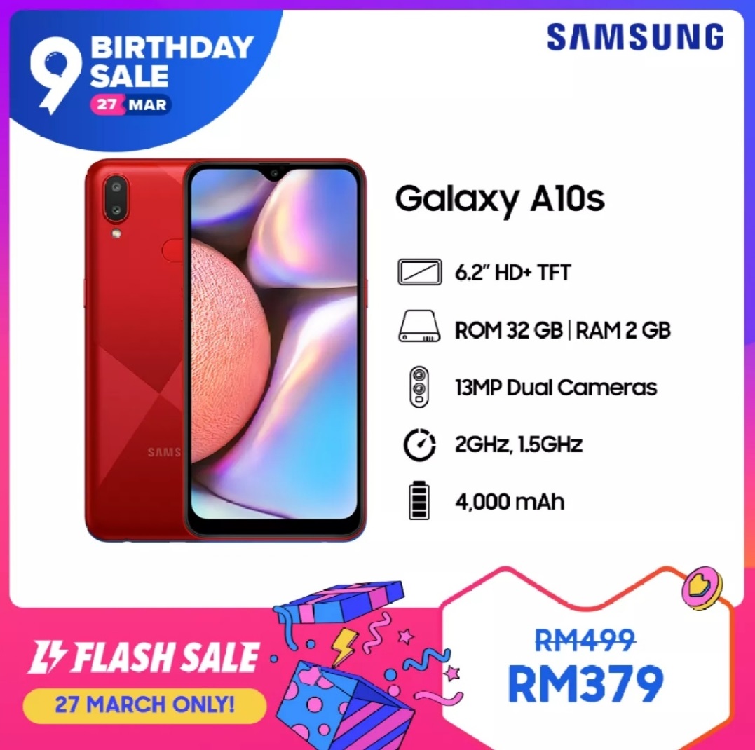 ▪ Samsung Galaxy A10s (2GB RAM+32GB ROM) Smartphone – RM499 RM379【点击这里】