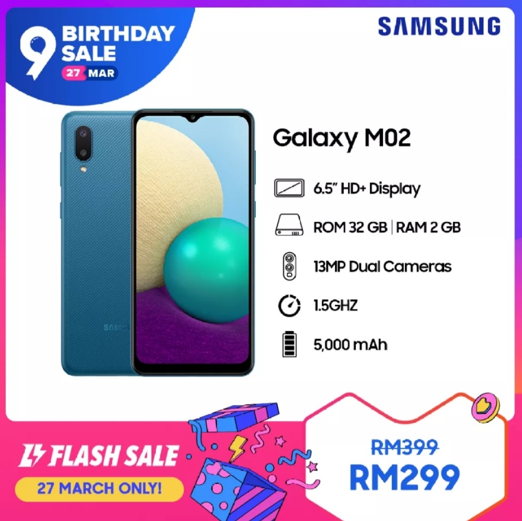 ▪ Samsung Galaxy M02 (2GB RAM+32GB ROM) Smartphone – RM399 RM299【点击这里】