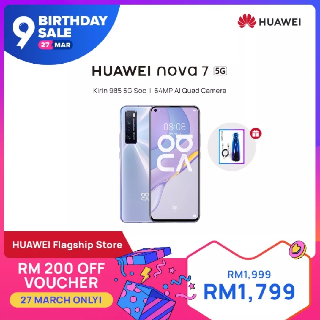 ▪ HUAWEI nova 7 (8GB RAM + 256GB ROM) Smartphone – RM1999 RM1799【点击这里】