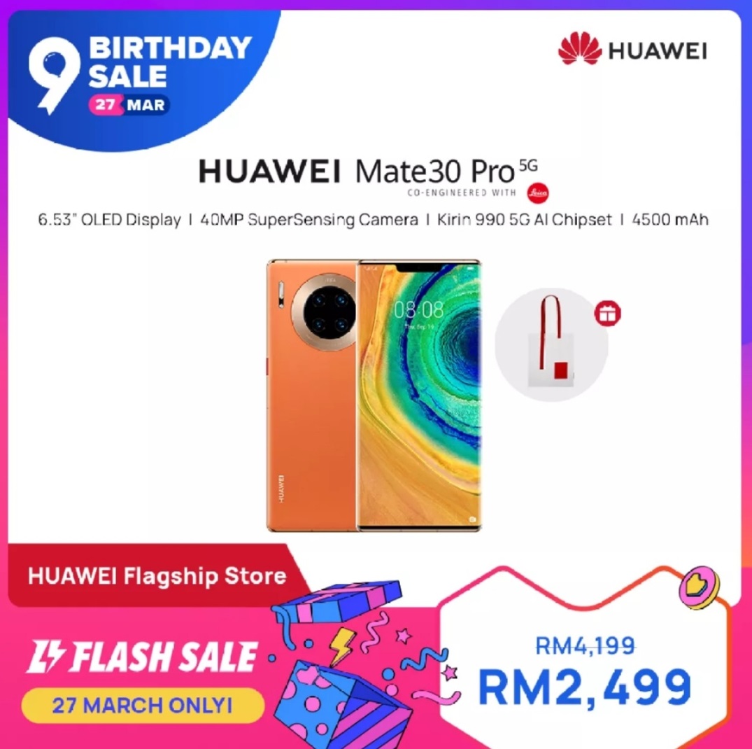 ▪ HUAWEI Mate 30 Pro (8GB RAM + 256 ROM) Smartphone – RM3599 RM1999【点击这里】