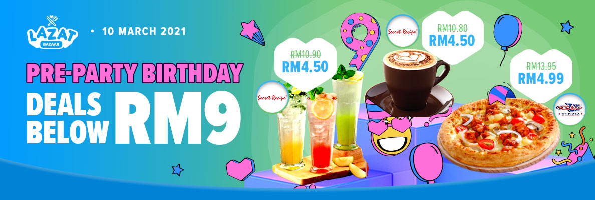 为了配合Lazada 9周年庆推出【Pre-Party Birthday】一系列的美食饮料优惠!现在我们来看有哪些促销吧!
