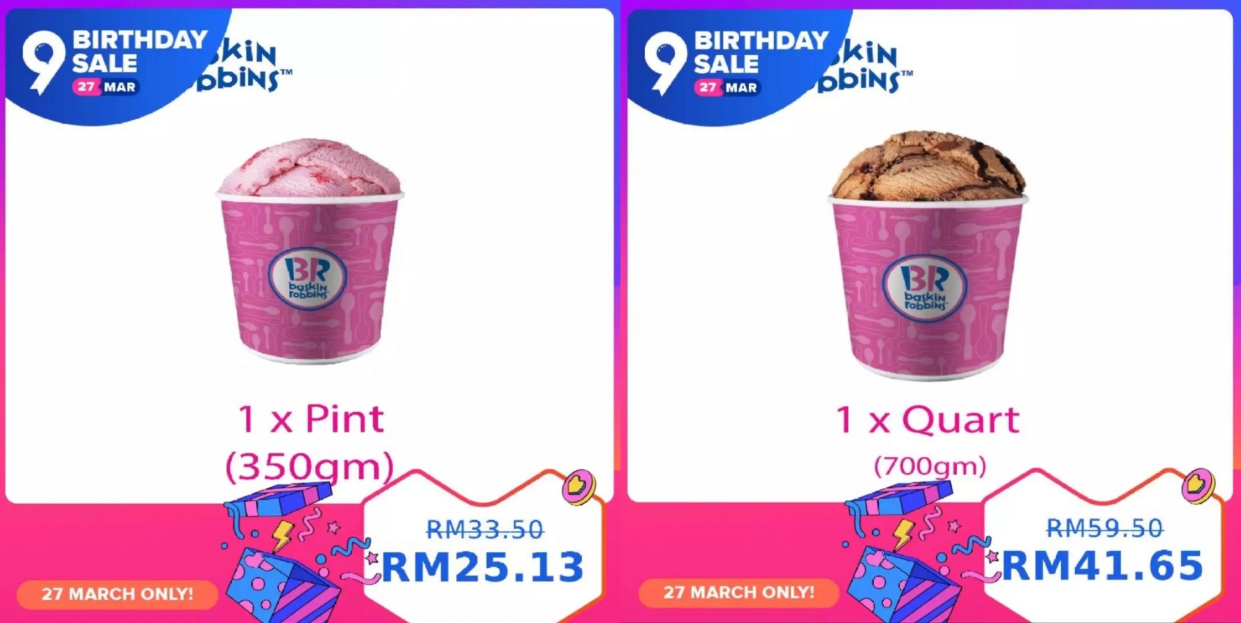 iii)Baskin Robbins Handpacked Ice Cream – 1 x Quart – 只需RM41.65(原价RM59.50);购买【点击这里】