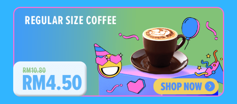 i) Regular Size Coffee (Expresso/Long Black/Flat White) – 只需RM4.50(原价RM10.80);购买【点击这里】