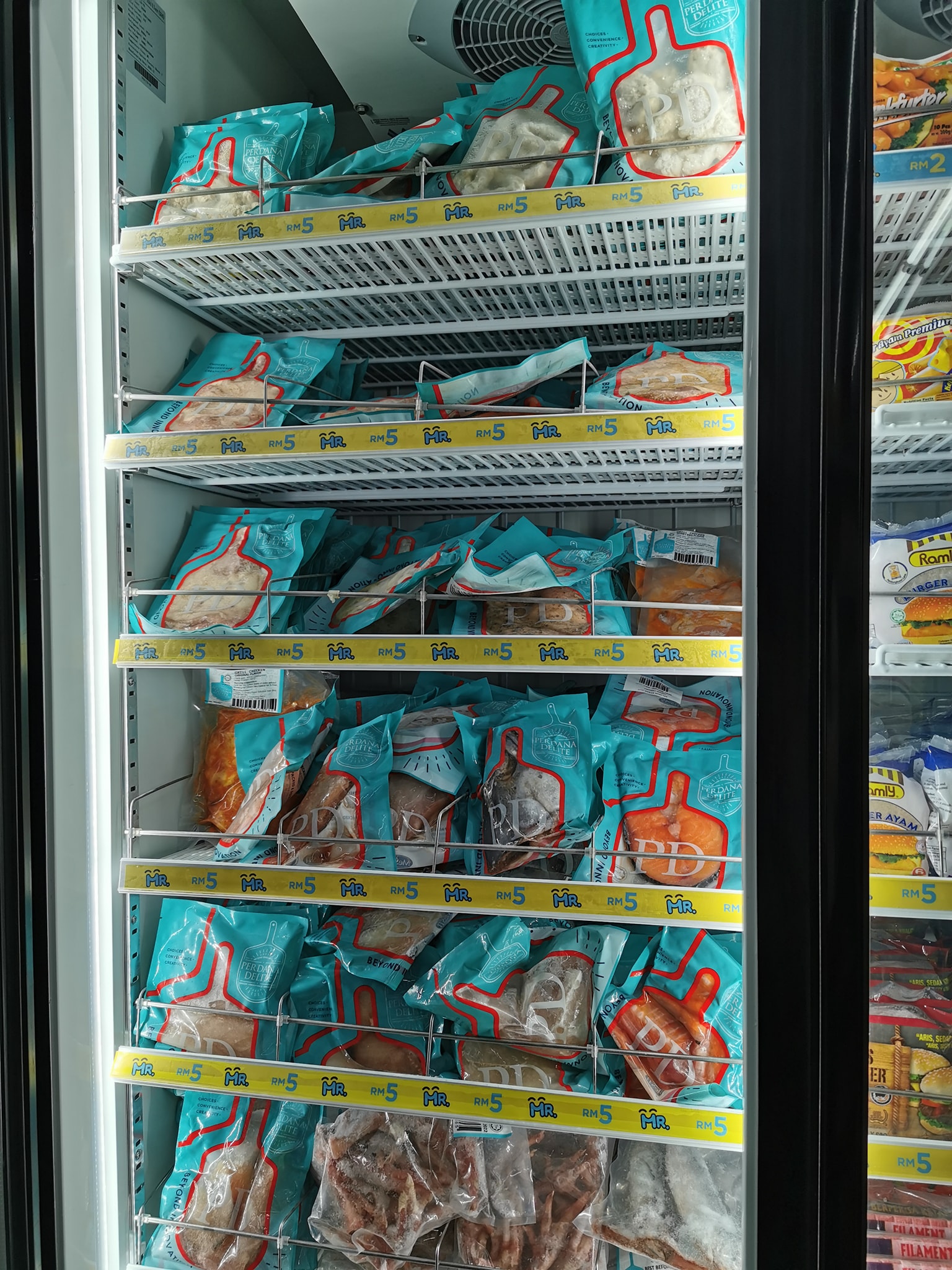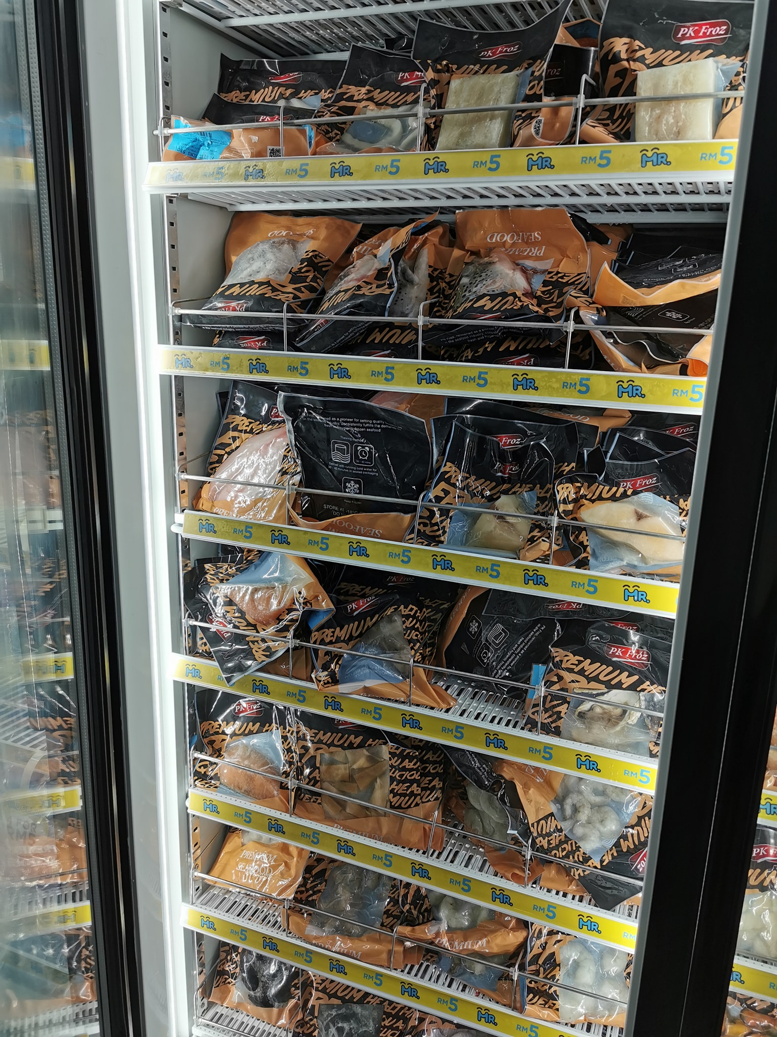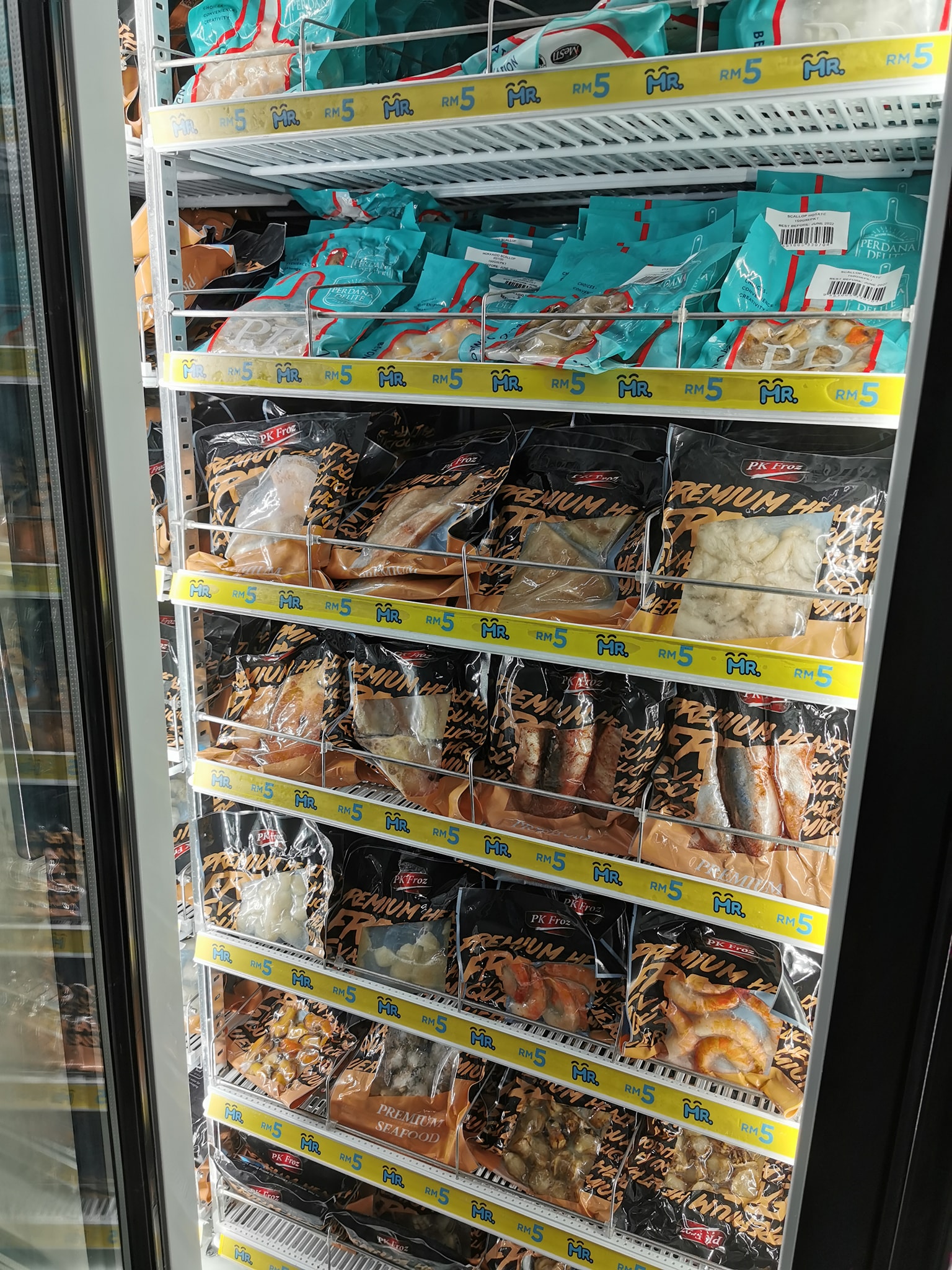 ▼ Mr. Dollar 超市冰箱里摆满了各式各样的海鲜,都只需RM5!