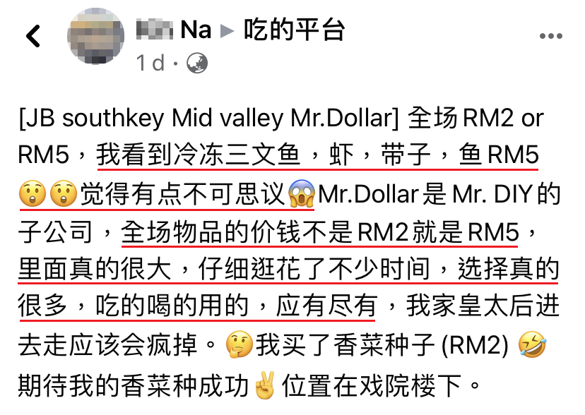 而近日一名大马网友就在“吃的平台”分享好康引起千人点赞和转发,MR. D.I.Y的子公司——Mr. Dollar强势来袭,全场商品只需RM2或RM5,就连三文鱼也仅RM5,超便宜的!