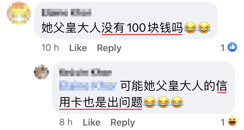 ▼ 网友猜测,可能她的父皇credit card也出问题了!哈哈哈!