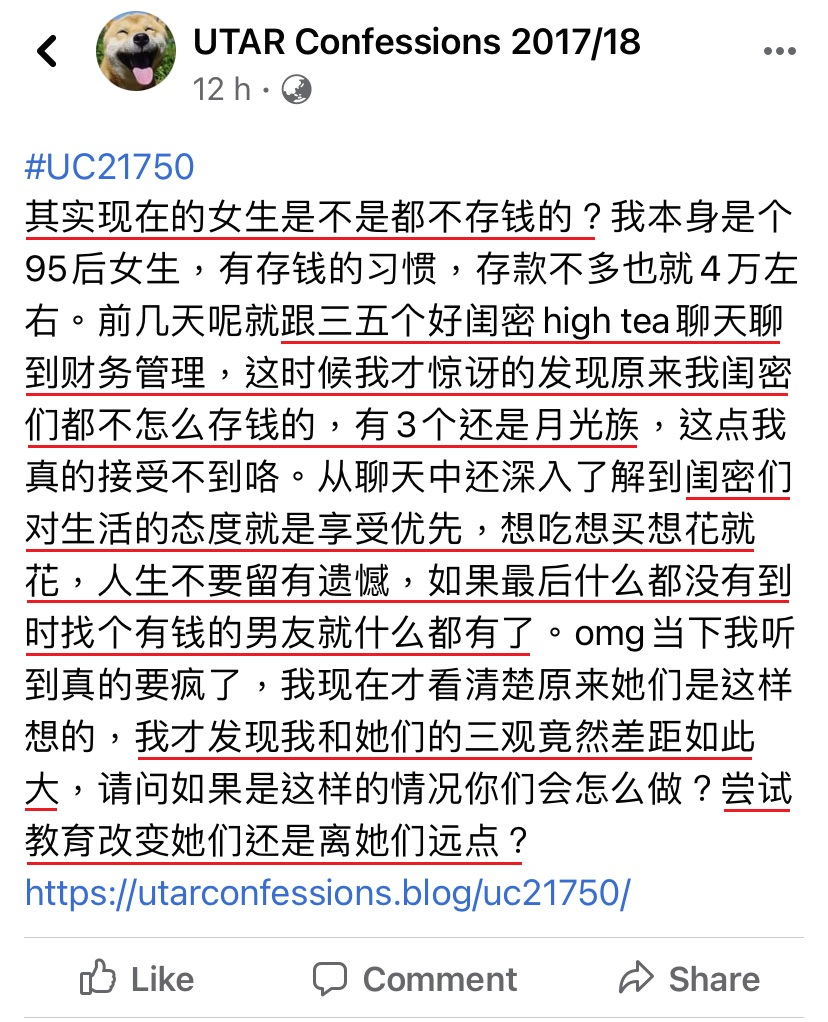 来源:UTAR Confessions 2017/18 / Facebook