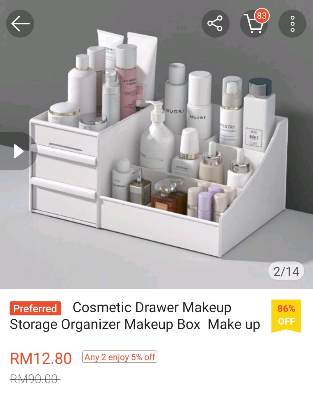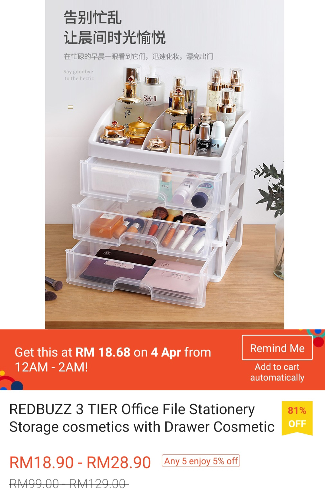 ③ 抽屉式化妆品收纳盒 —— 价格只需RM12.45 – RM25.10