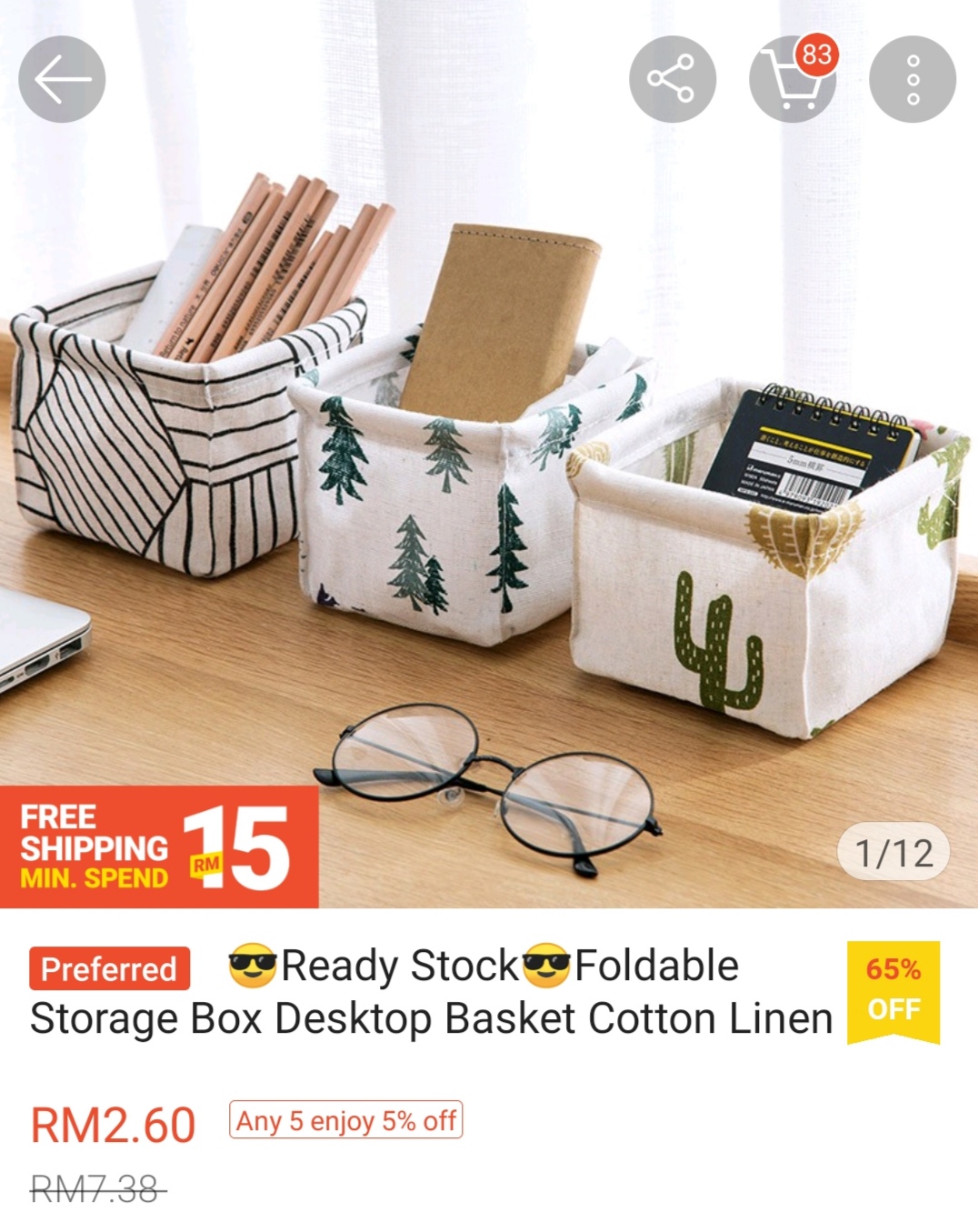 ① 棉麻桌面收纳盒 —— 价格只需RM2.95