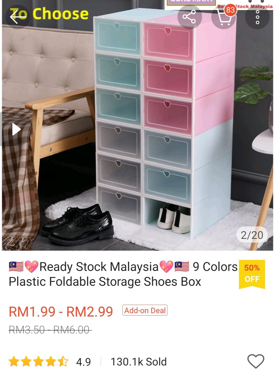 ⑨ 塑料折叠收纳鞋盒 —— 价格从RM1.49-RM2.99