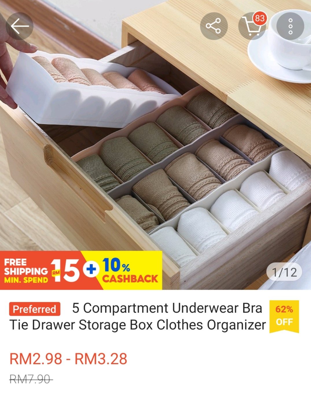 ⑥ 内衣裤收纳盒 —— 价格从RM2.87-RM3.18