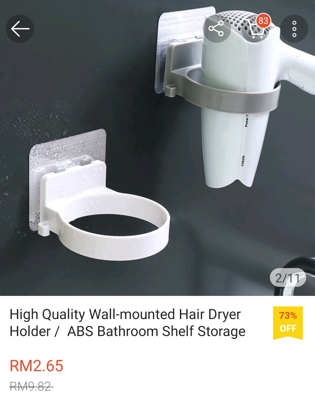 ⑩ 吹风机免打孔收纳架 —— 价格只需RM2.65