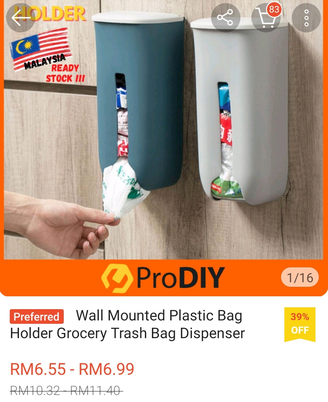 ⑮ 壁挂式收纳塑料袋 —— 价格从RM6.35 – RM6.78