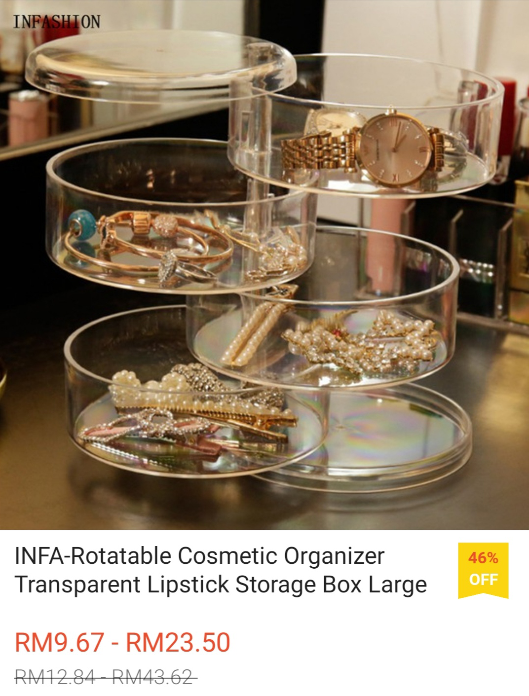 首饰/化妆品透明收纳盒 —— 价格从RM9.67 – 23.50