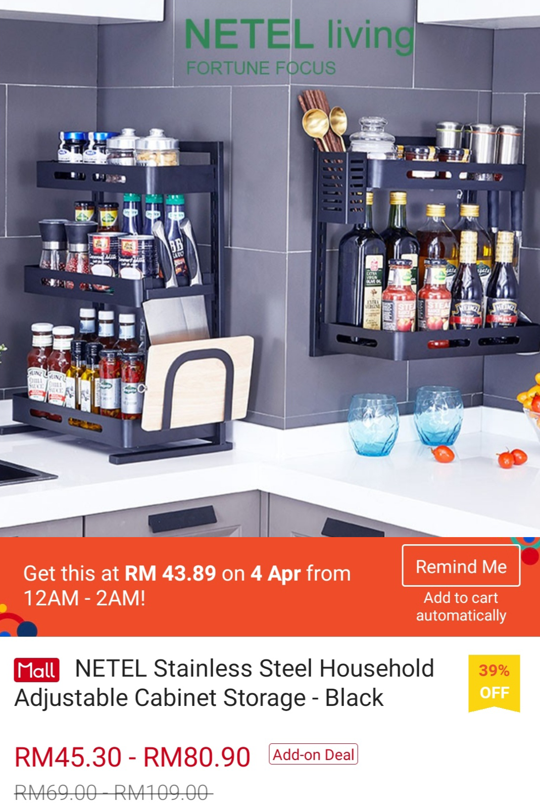 ⑱ 不锈钢可调节厨房架子 —— 价格从RM43.89 起