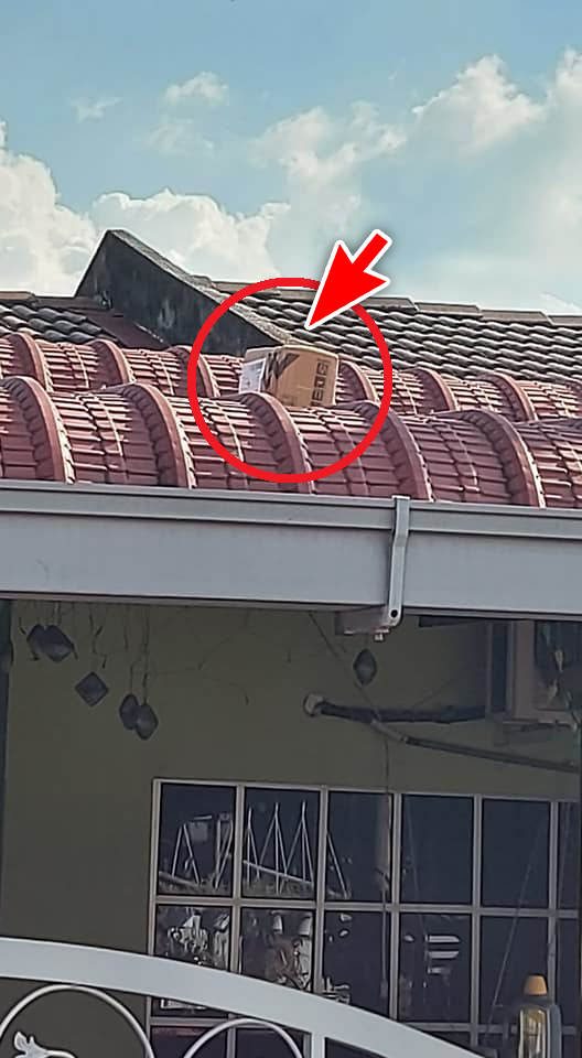 大马网友找不到包裹!原来是快递员「太有力」把包裹丢到住家的屋顶上了!