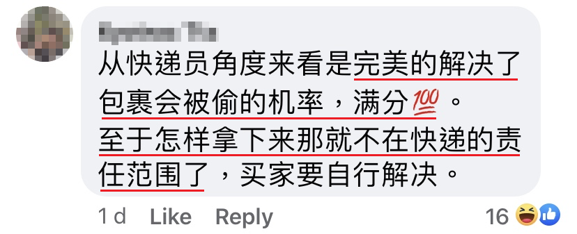 近日一名大马网友在社交平台PO文并上传照片,快递员没有按照惯例将她的包裹丢进屋里,反倒丢到一个常人不容易看到的地方!