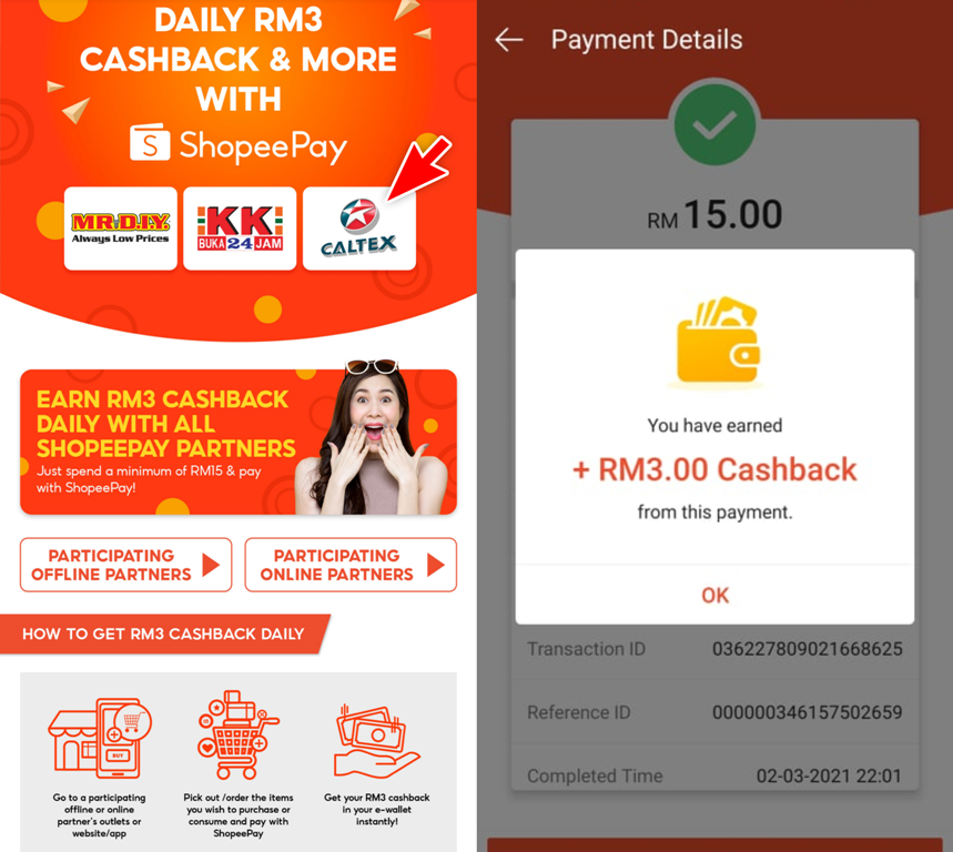 在Caltex 使用ShopeePay 添油或消费可获得可获得高达RM32现金回扣!