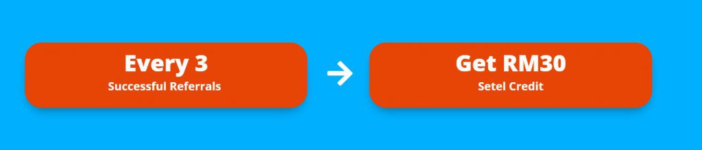 • 成功推荐 = 完成注册 + 在指定的活动期间内充值最少RM30 到Setel 户口