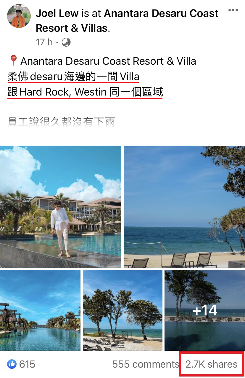 男网友 Joel 日前发文分享一系列在 Anantara Desaru 海岸度假村所拍下的美照,超清澈的大海加上高级的设施享受,简直像在国外度假一样!