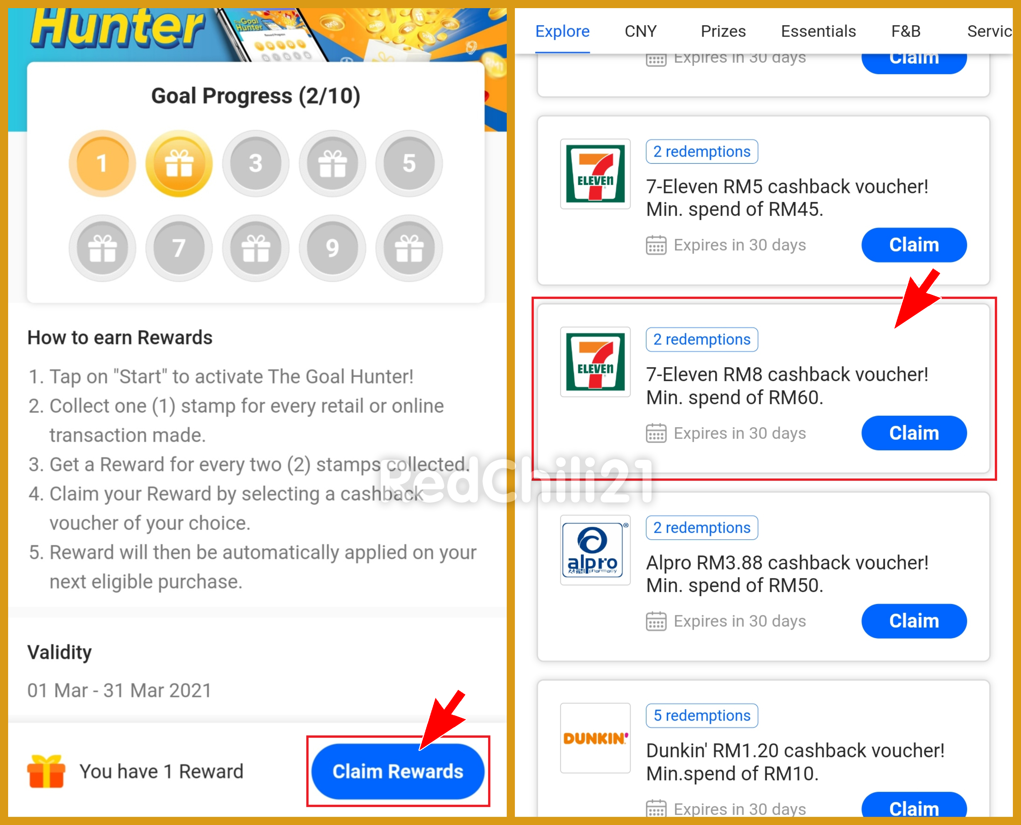 步骤2:选择【7-Eleven RM8 Cashback】优惠券,点击「Claim This Voucher」。