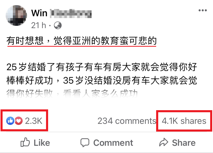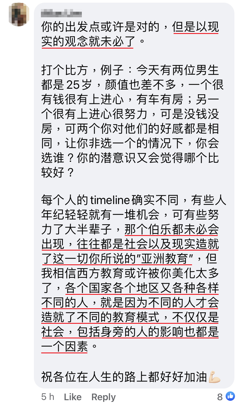 一名大马网友日前在脸书发长文,谈及有关亚洲人的价值观,引发很多人的共鸣。