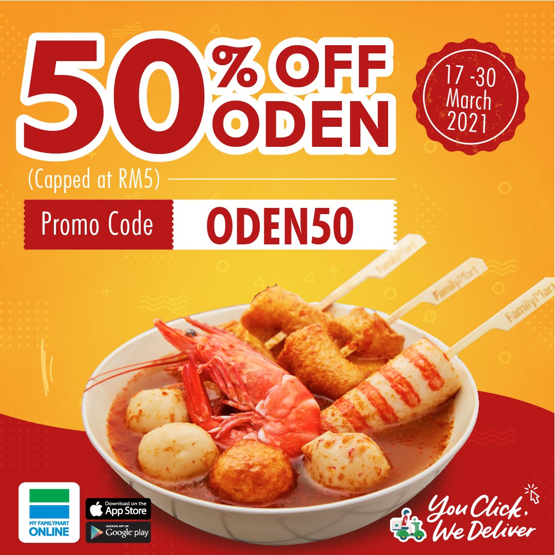 这项优惠从即日起至3月30日,只要你通过MY FamilyMart ONLINE 的外送服务,购买关东煮可获得50%折扣!