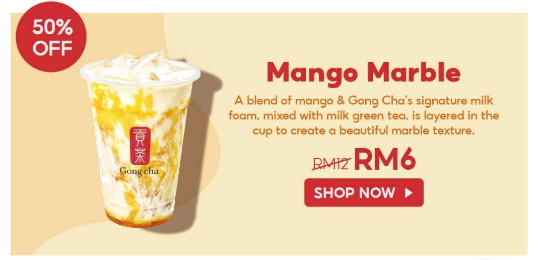 Gong Cha 推出饮料50%折扣优惠!饮料只需RM6!