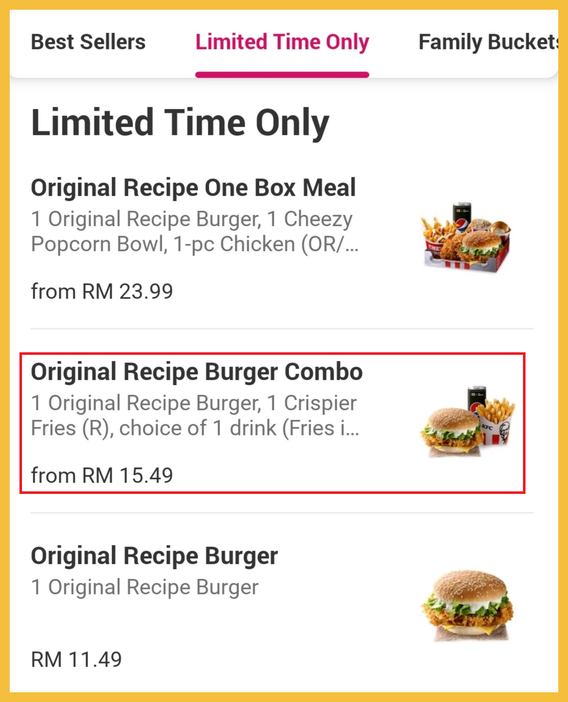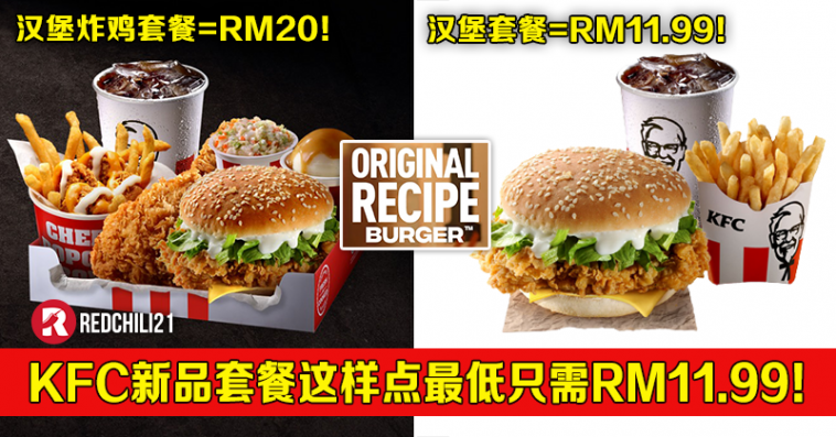 促销活动:使用优惠代码订购KFC Original Recipe Burger 套餐可获得高达RM8折扣