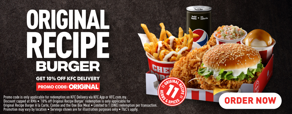 ▼ 此外,KFC 也有推出新Promo Code【ORIGINAL】可折扣10%(折扣高达RM6)!
