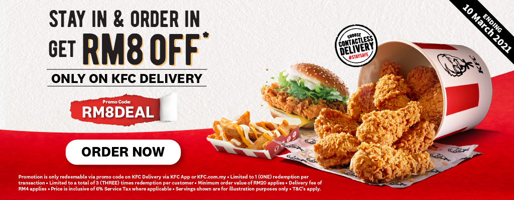 那想要购买KFC新品的朋友,你可选择KFC 官网/App、Foodpanda 下单哦!还可享有折扣优惠,最高可折扣RM8!