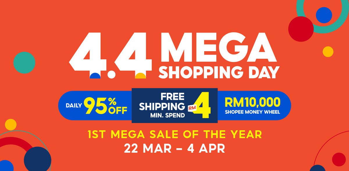 为了配合4月4日的到来,大马网购平台Shopee 从3月22日至4月4日举办【4.4 Mega Shopping Day】促销活动!优惠长达14天!