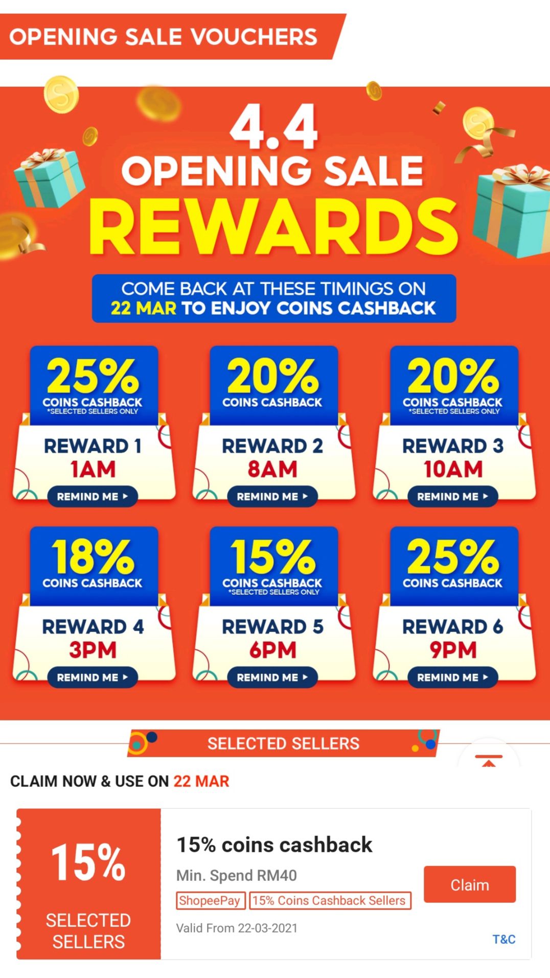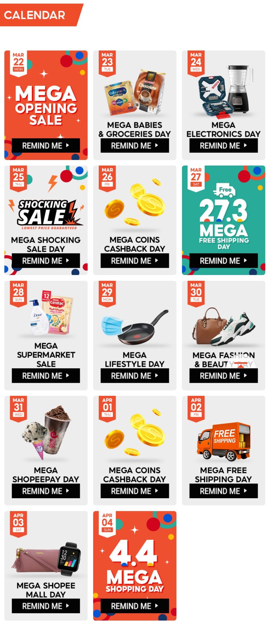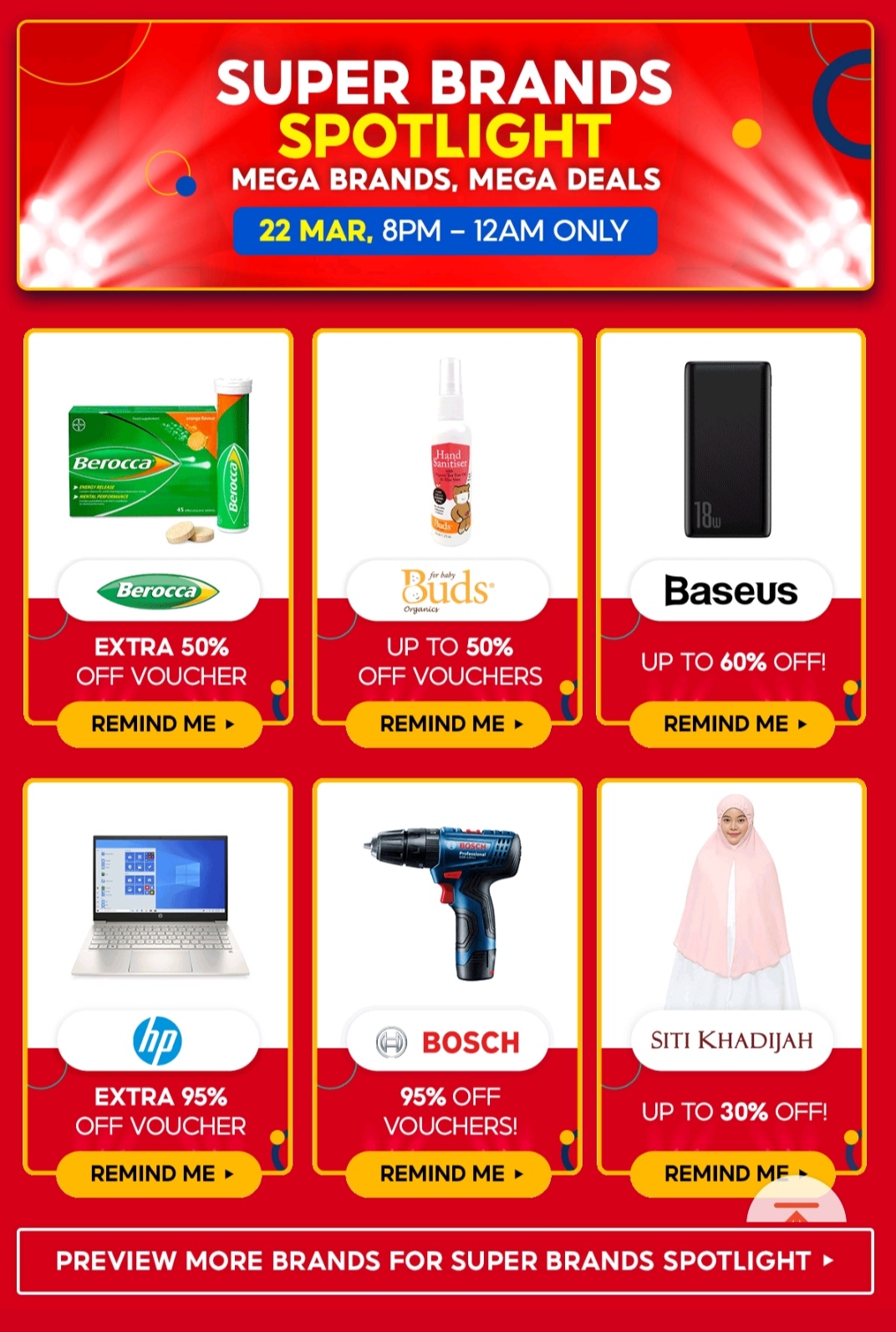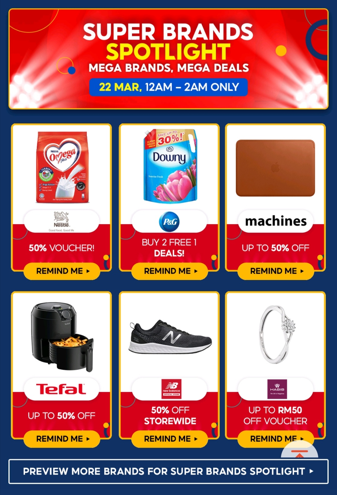 Shopee 将会在3月22日至4月4日期间推出一系列的品牌产品促销!你可点击Remind Me 获得通知哦!