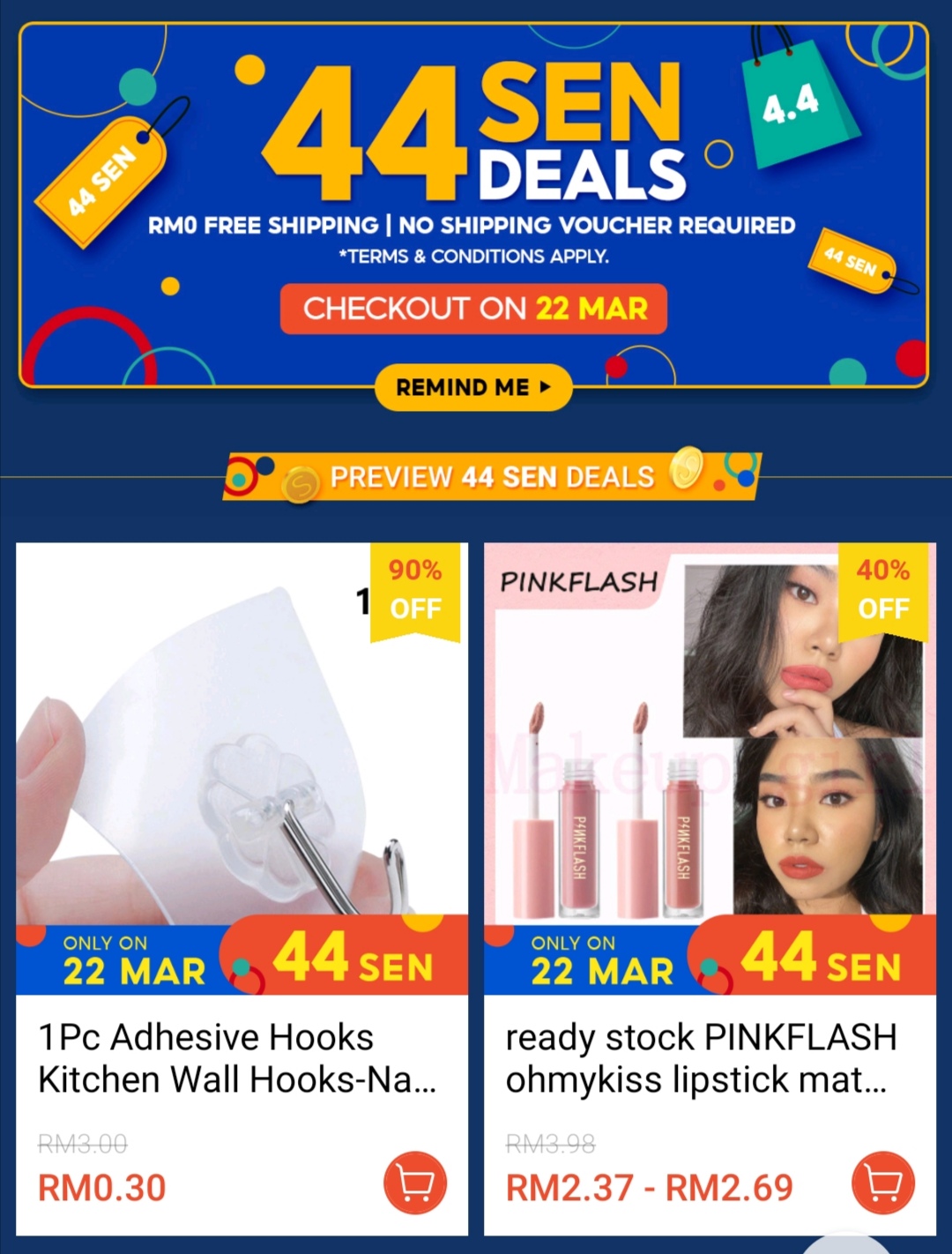 i)3月22日当天的12am 至2am,各大品牌商品推出大折扣!最低只需RM0.01!