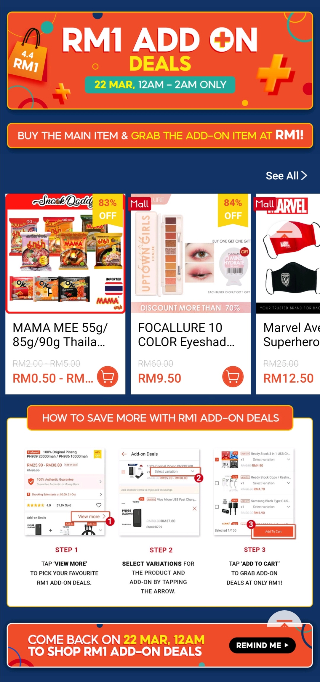 iv)添购商品可享有RM1 优惠价格!只限3月22日的12am 至2am!