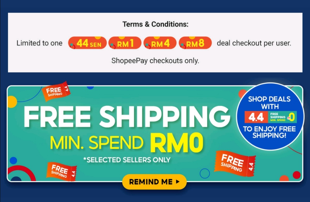 ※ 在一次交易中,限定用户购买一次RM0.44、RM1、RM4或RM8 的商品!必须使用ShopeePay 付款!