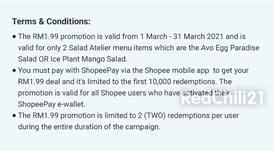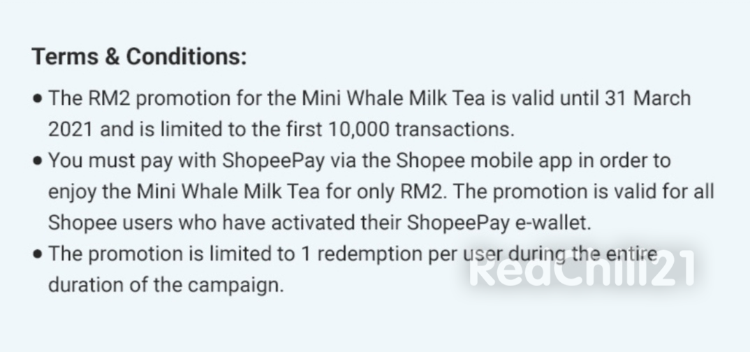 - 每月每位用户只限兑换2次该优惠(总可获得4次,可获高达RM32 回扣)