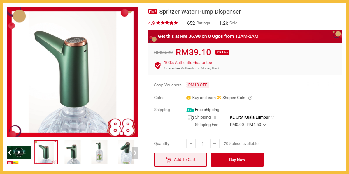 ▼ 在Shopee 8月8日的12am-2am 购买可享有优惠价RM36.90;购买链接【点击这里】