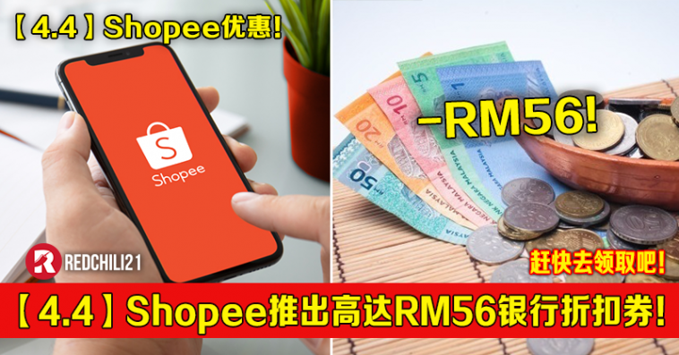 为了配合4月4日的到来,Maybank 与Shopee 联合推出一系列的折扣礼券!最高可领取RM56!